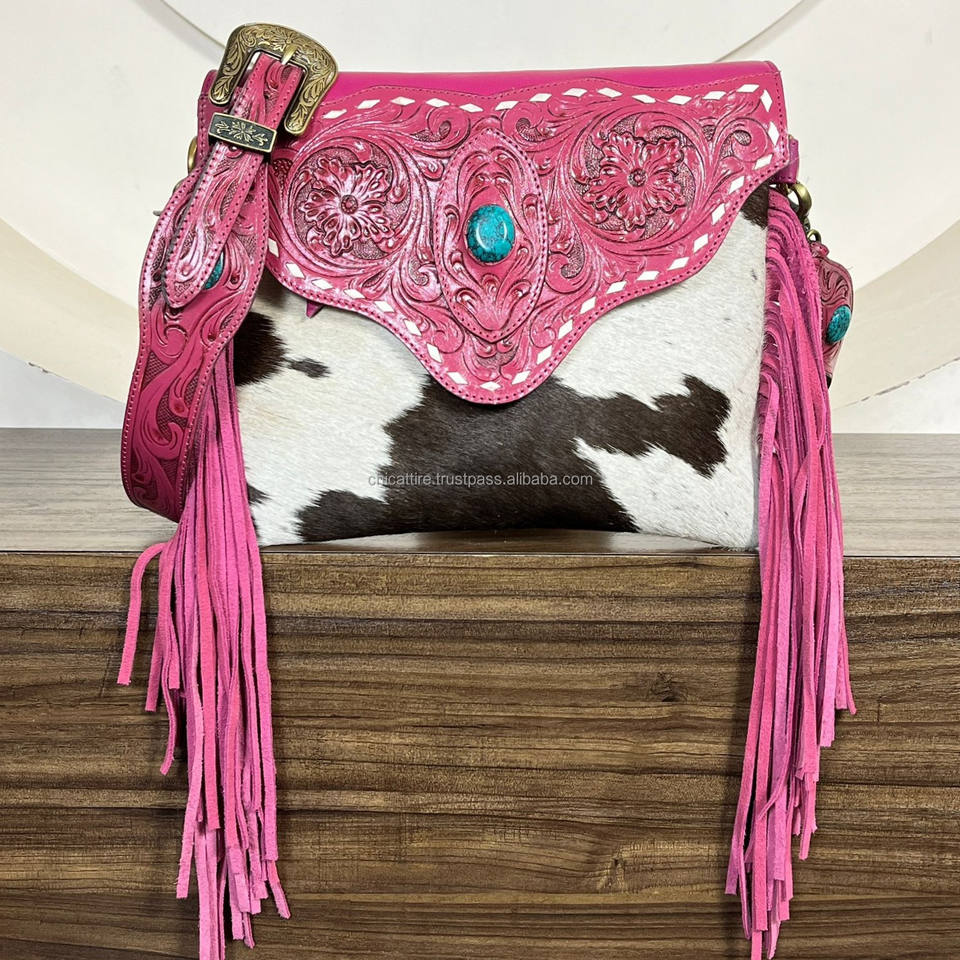 Product name:Hand Tooled Cowhide Leather Fringe Crossbody Bag