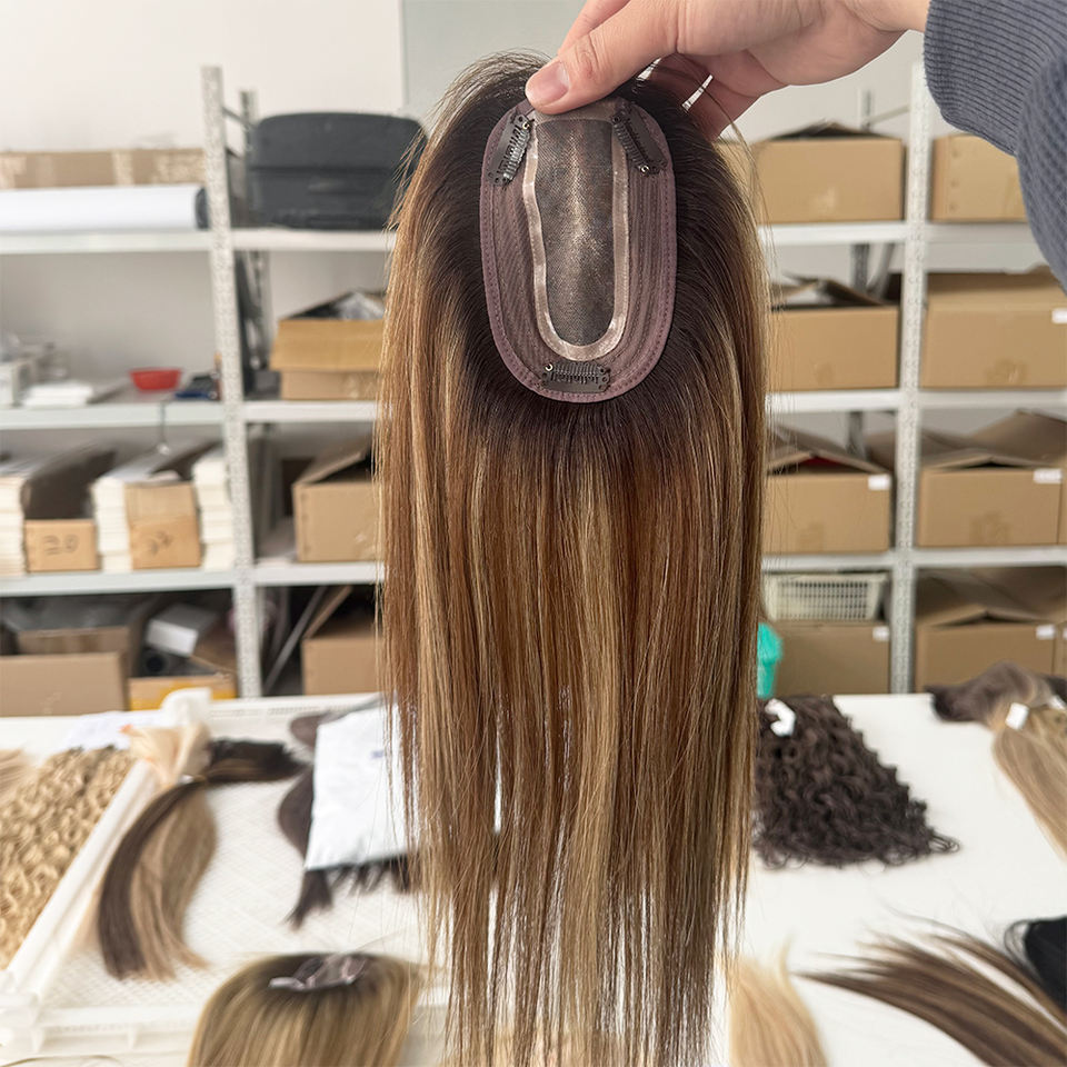 2026 New Design Natural Russian Lace And Weft Topper Virgin Hair Topper Mono Base Topper Invisible Knots 130% Density Women