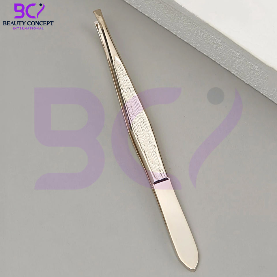 แหนบถอนขนคิ้วสีโรสโกลด์ ดีไซน์ใหม่ปี 2026 หรูหราสีดำด้าน ปลายเฉียง สำหรับถอนขนอย่างมืออาชีพ ระดับซาลอน อุปกรณ์เสริมความงาม