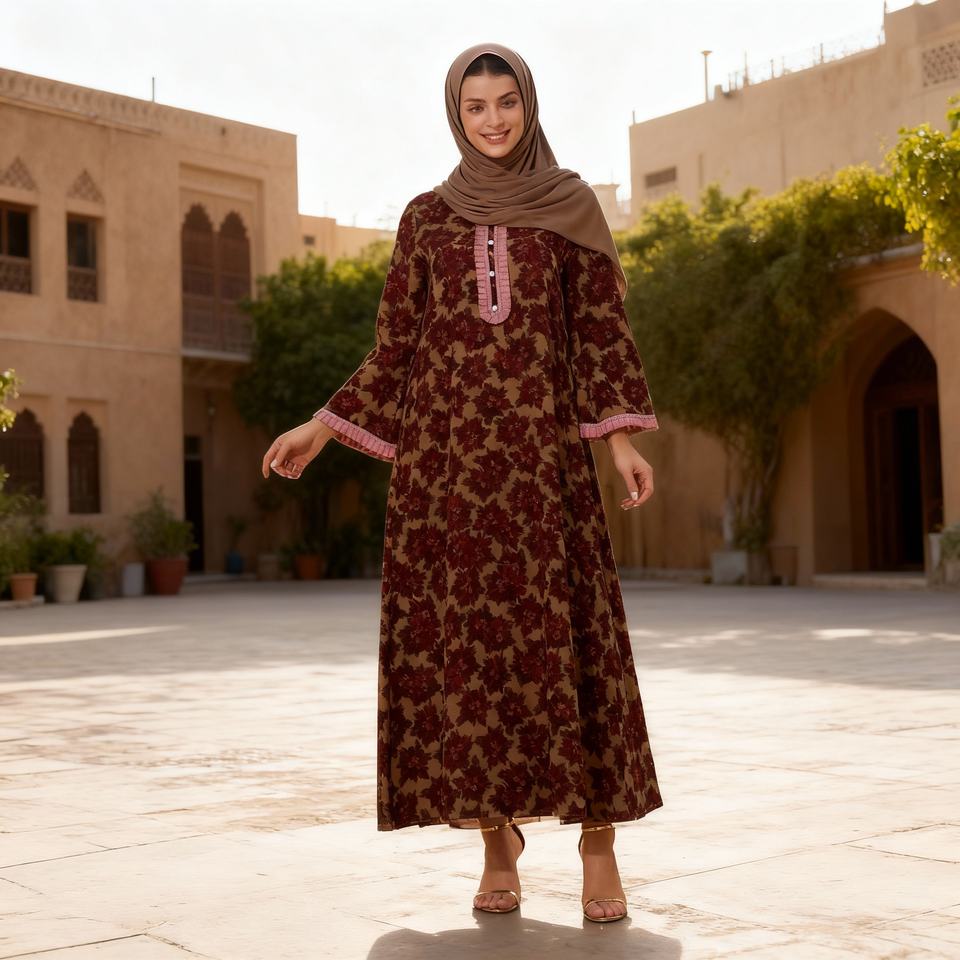 เดรสยาวพิมพ์ลายสำหรับผู้หญิงมุสลิมผ้าพิมพ์ลายชุดเดรสลำลองสวมใส่สบายสำหรับทุกวันดีไซน์ใหม่2026