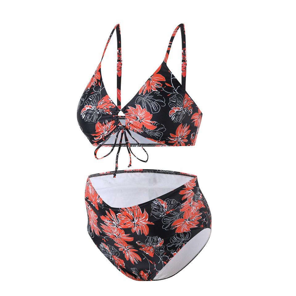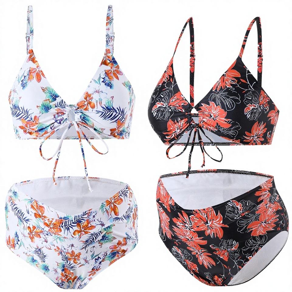 ชุดว่ายน้ำบิกินี่แบบเซ็กซี่สไตล์ยุโรป-อเมริกัน ปี 2026 แบบสามชิ้น ผ้าสแปนเด็กซ์/ไนลอน ลายดอกไม้ สำหรับหญิงตั้งครรภ์ ไซส์พลัส