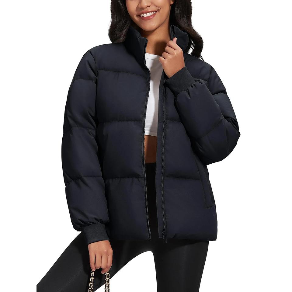 2026ใหม่แจ็กเก็ตแบบมีซิประบายอากาศได้ดีสีพื้นสำหรับผู้หญิงเสื้อนอกฟองไซส์ใหญ่พิเศษฤดูหนาวฤดูใบไม้ร่วง