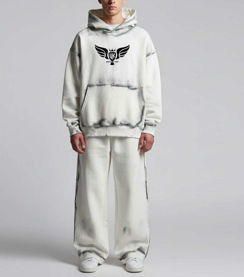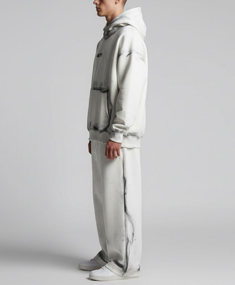 ชุดเซ็ตสองชิ้นทรงโอเวอร์ไซส์แบบย้อมสีเอซิด สไตล์สตรีทแวร์ เสื้อฮู้ดดี้ทรงหลวมและกางเกงขายาวทรงสเวตแพนท์สำหรับผู้ชาย