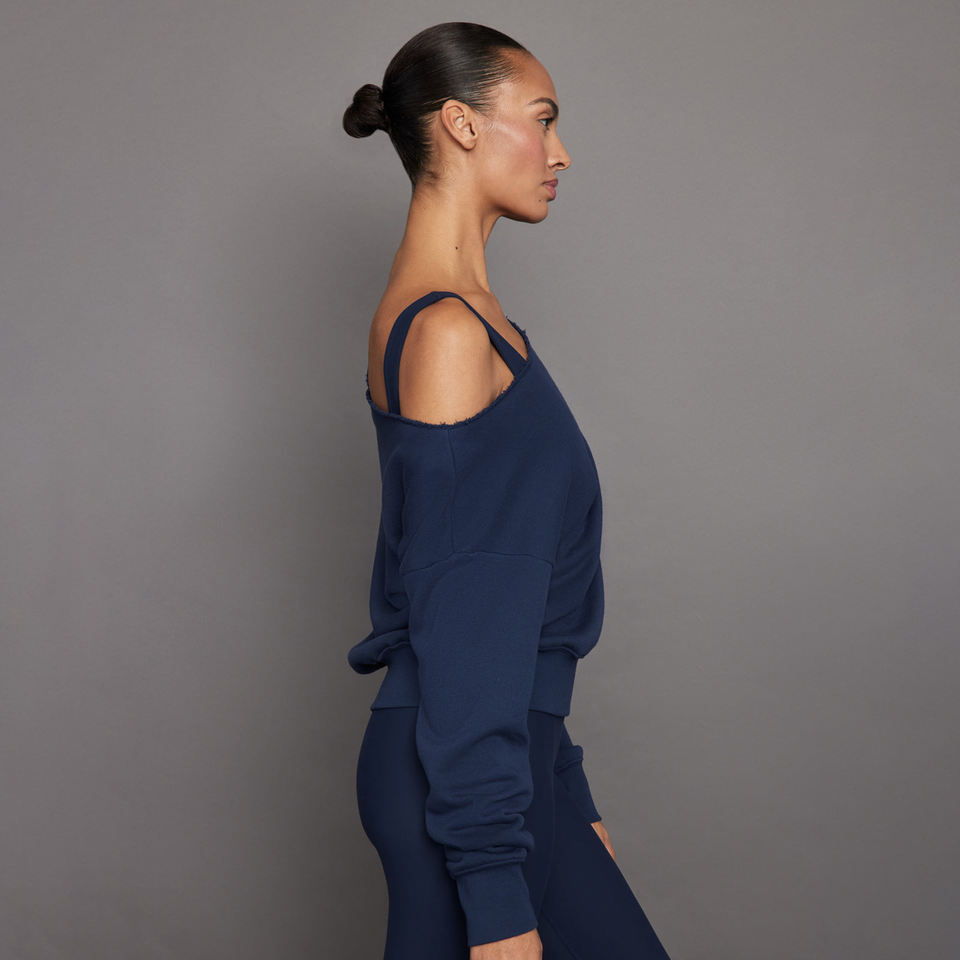 เสื้อสเวตเชิ้ตเทอร์รี่แขนยาวทรงโอเวอร์ไซส์แฟชั่นใหม่ปี 2026 สำหรับผู้หญิง ดีไซน์เปิดไหล่ สวมใส่สบายในฤดูหนาว พร้อมปักโลโก้ตามสั่ง
