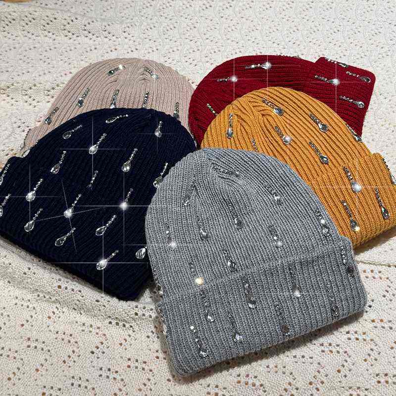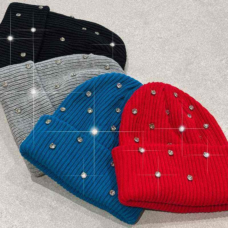 หมวกถักประดับเพชรแวววาวสำหรับผู้หญิง2026ใหม่แฟชั่นใหม่หมวกสตรีทแวร์หรูหรา Y2K ประดับพลอยเทียม