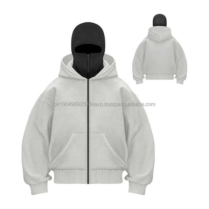 2026 New Fashion Men's Ninja Hoodie with Customized Logo High Quality White Zip Balaclava for Autumn Plain Zipper 2026