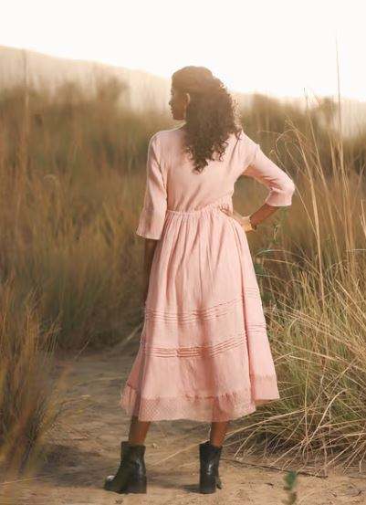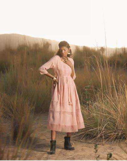 เดรสแฟชั่นฤดูร้อนปี 2026 แบบหลายชั้น ดีไซน์แขนสั้นสีชมพู ดีไซน์ใหม่ เดรสยาวทรงแม็กซี่ คอกลมสำหรับผู้หญิง