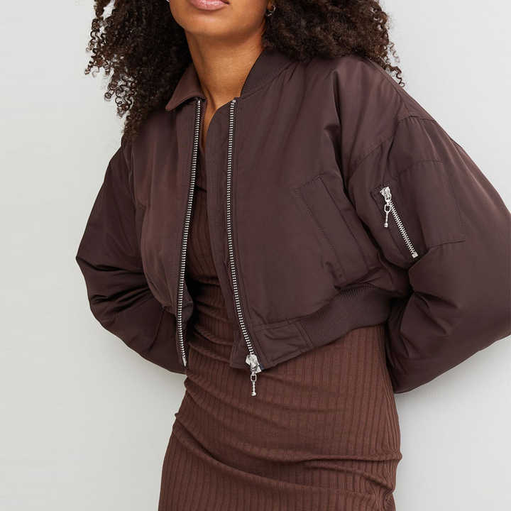 2026แจ็คเก็ตบอมเบอร์สำหรับผู้หญิง, เสื้อแจ็กเก็ตไนลอนย้อมสีล้วนระบายอากาศได้ดีสวมใส่สบายสำหรับฤดูหนาวฤดูใบไม้ร่วง