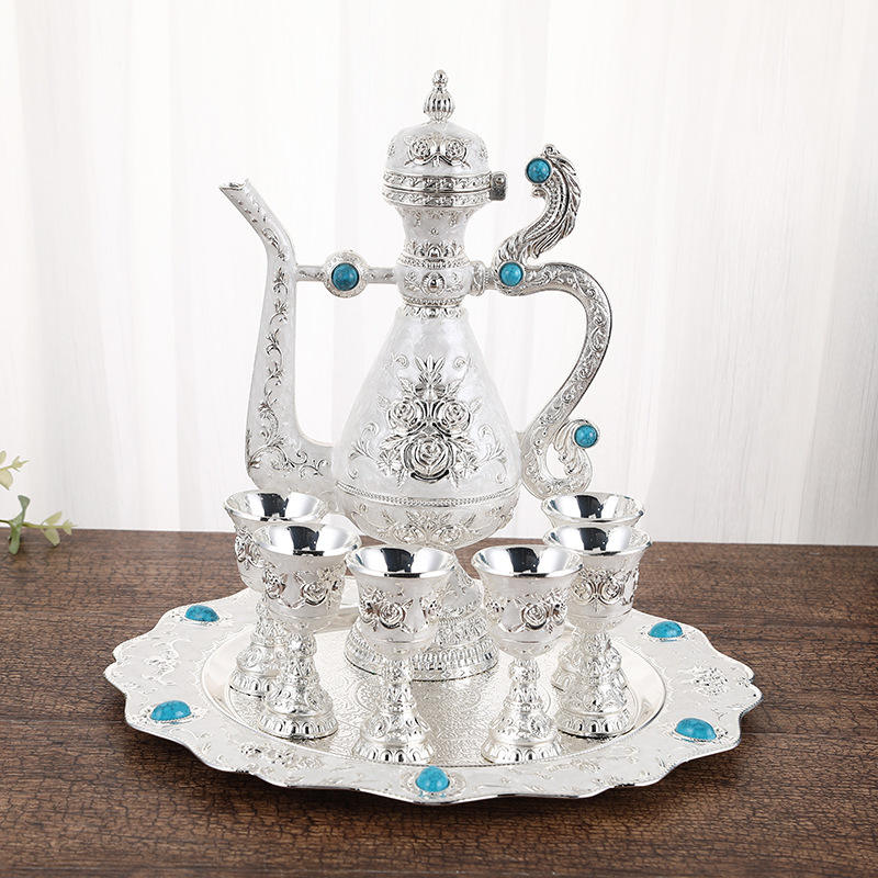 ชุดไวน์อัญมณีใหม่ปี 2026, ชุดตกแต่งตู้ไวน์, ชุดไวน์จานสูงสไตล์ยุโรปสำหรับบ้าน, ชุดไวน์โลหะสุดหรู