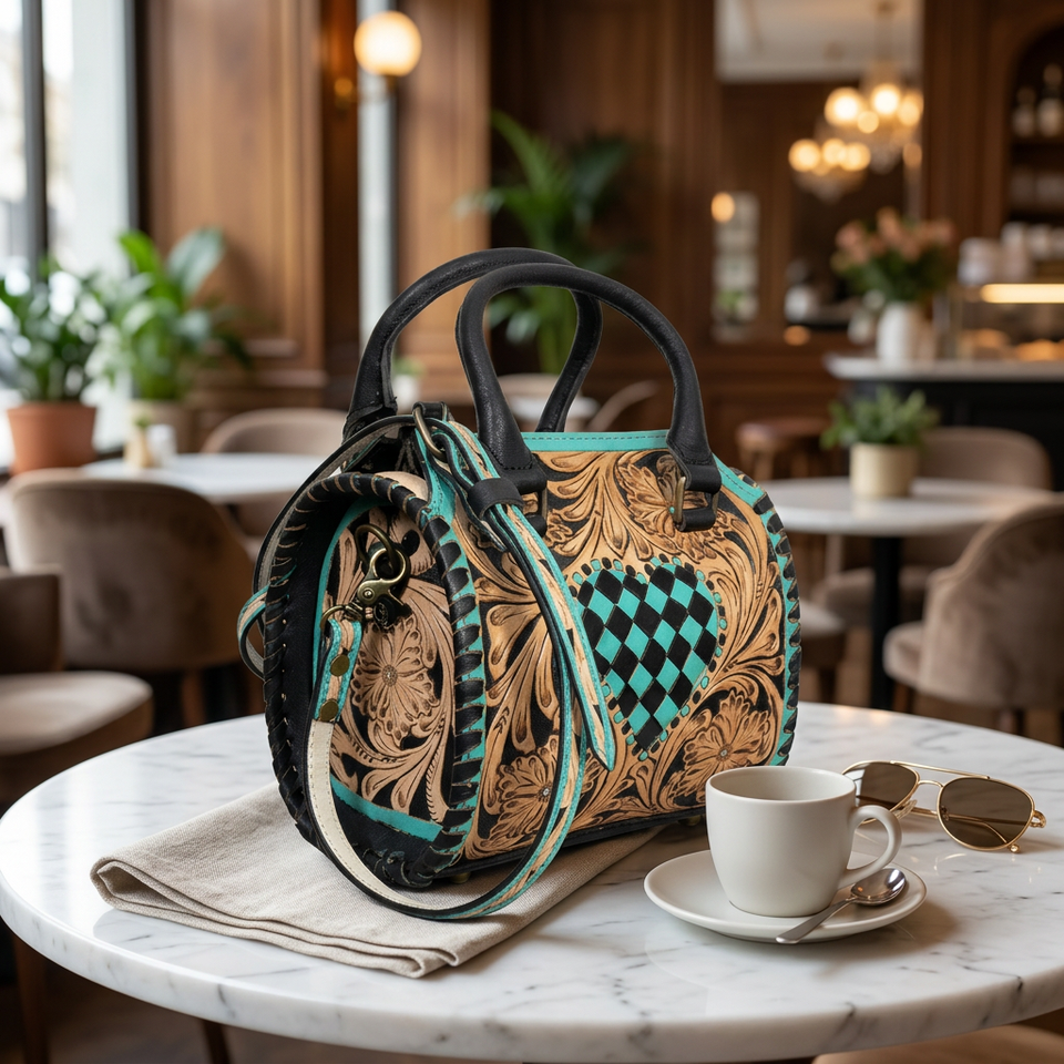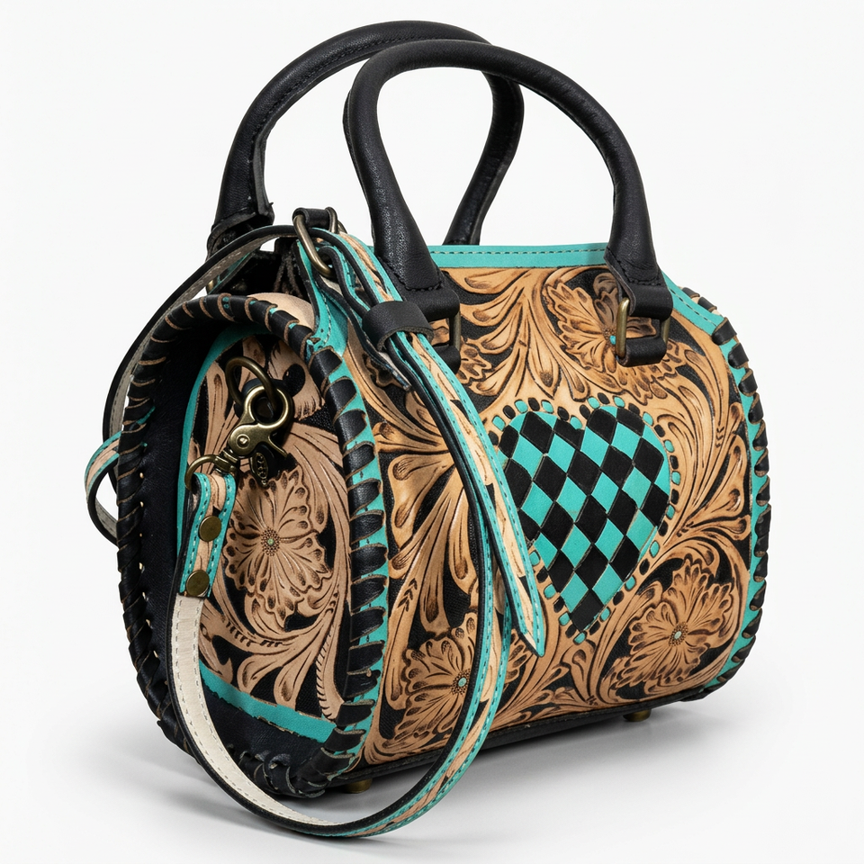 Product name:Tooled Leather Speedy Duffle Bag