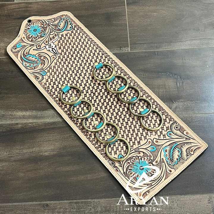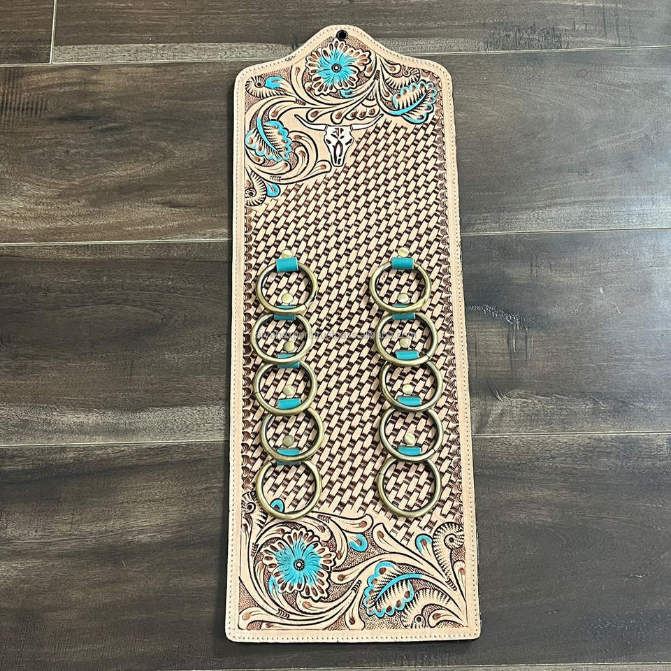 ที่แขวนผ้าพันคอหนังแท้สไตล์ตะวันตก งานแฮนด์เมด ปี 2026 พร้อมห่วงโลหะ ลายแกะสลักดอกไม้ สำหรับโชว์สินค้าในร้านค้า ขายส่ง รับผลิตแบบ OEM