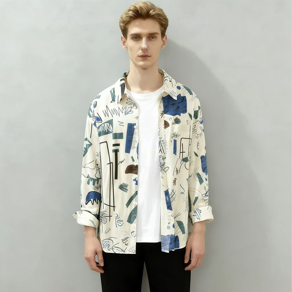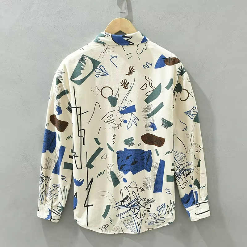 เสื้อเชิ้ตแขนยาวพิมพ์ลายไท-ไดสไตล์ฮาวายสำหรับผู้ชายปี 2026 ทรงหลวม ผ้าแฟลนเนล 100% ผ้าฝ้ายออร์แกนิค สำหรับฤดูใบไม้ผลิและฤดูใบไม้ร่วง รับผลิตแบบ OEM/ODM