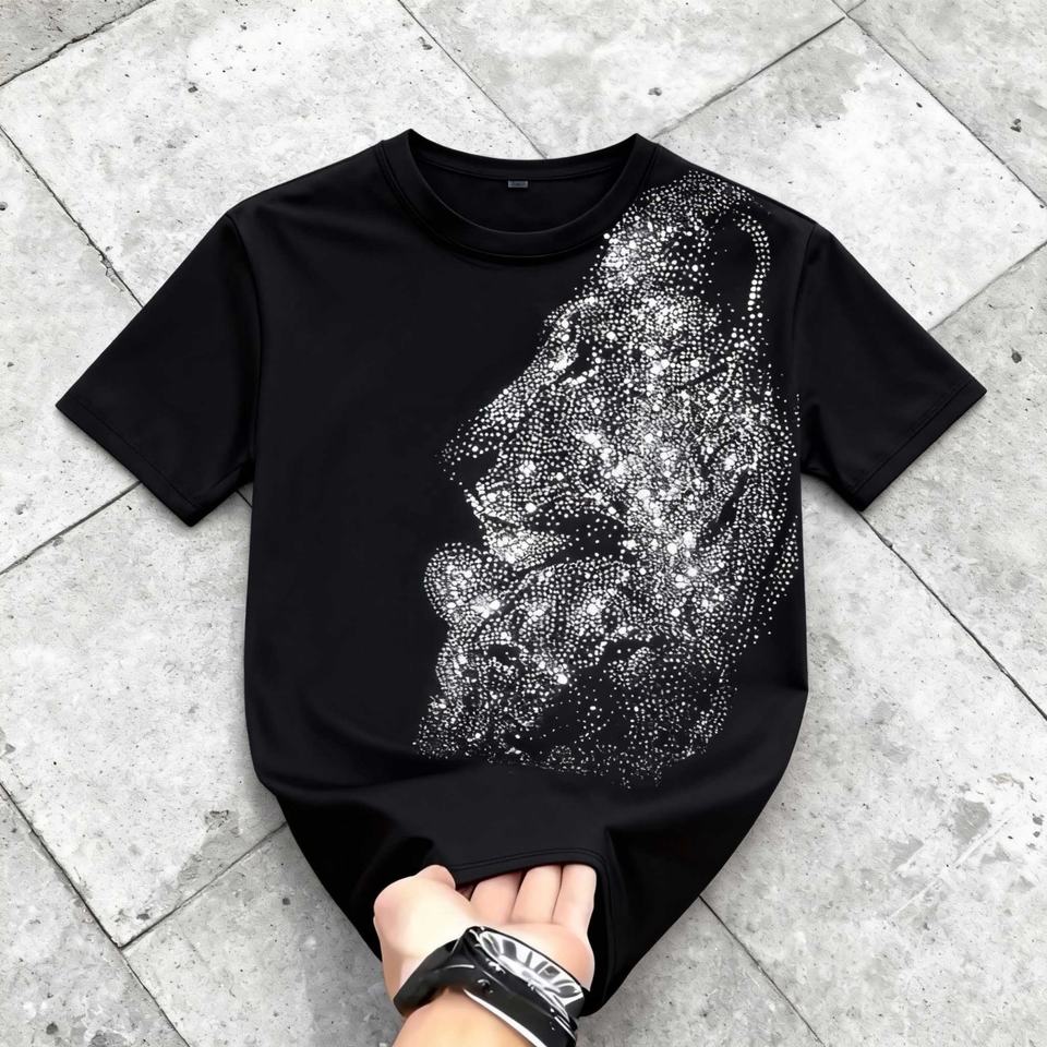 หมายเลขรุ่น:CUS251225-Rhinestone Graphic Print Boxy T-shirt