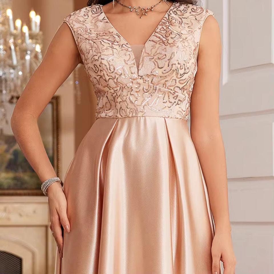 ชุดราตรีหรูหราประดับเลื่อมคอวี ปี 2026 สำหรับผู้หญิง ผ้าซาติน ชุดงานแต่งงาน ชุดงานพรอม ชุดเดรสยาว ชุดราตรีหรูหราสง่างาม