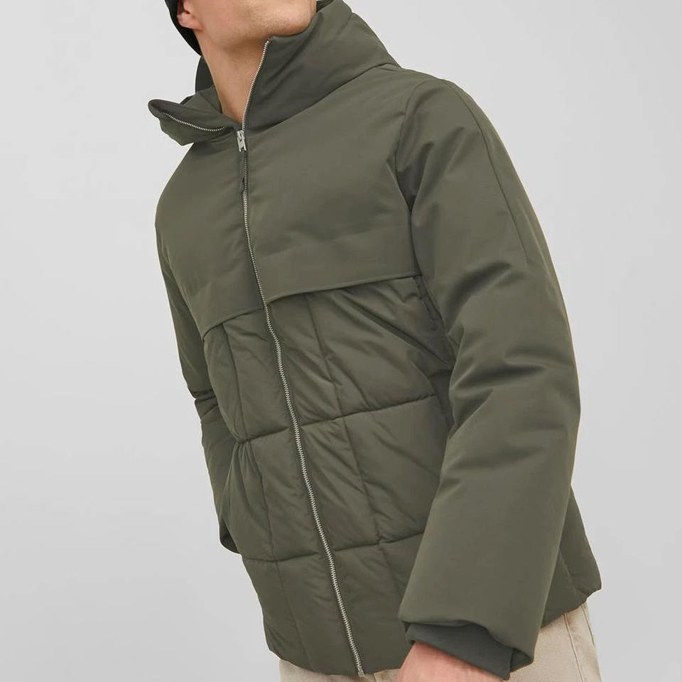 แจ็คเก็ตพัฟเฟอร์วินเทจทรงหลวมแบบมีฮู้ดสำหรับผู้ชายปี 2026 ผลิตในปากีสถาน เนื้อผ้าเคลือบ ระบายอากาศได้ดี มีซิป ไซส์ใหญ่ บุด้วยใยโพลีเอสเตอร์ เหมาะสำหรับฤดูหนาว