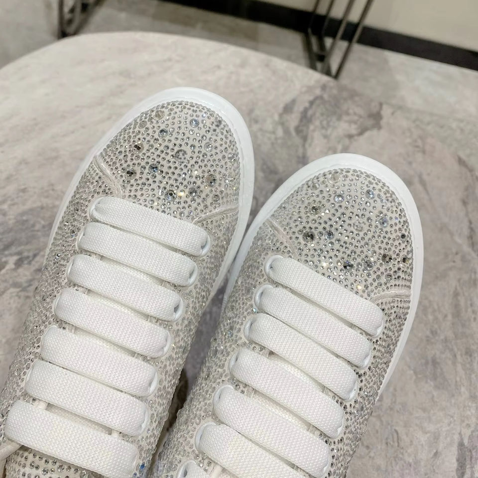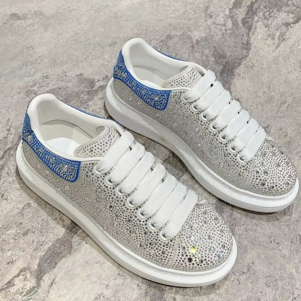 รองเท้าผ้าใบผู้ชายรุ่นใหม่ปี 2026 ประดับเพชรเต็มตัว สีขาว - ทันสมัย ใช้งานได้หลากหลาย สวมใส่สบาย เพิ่มความสูง รองเท้าสเก็ต