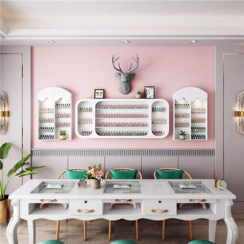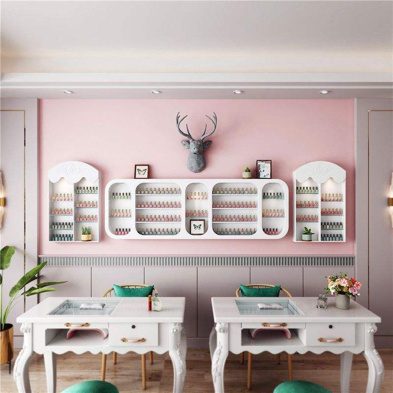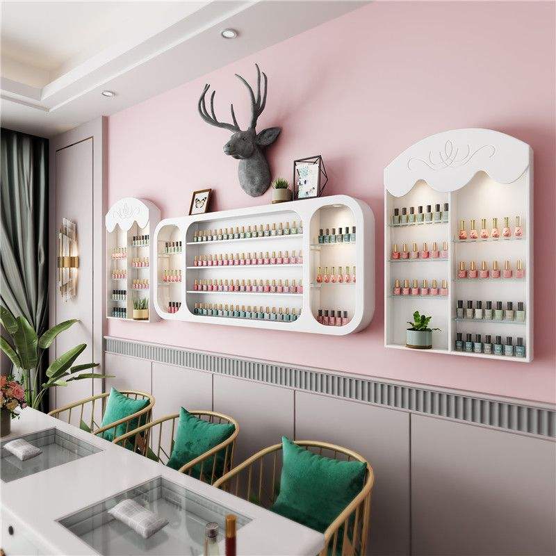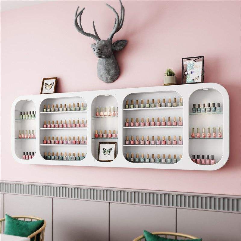 ชั้นวางโชว์เล็บโลหะแบบโมเดิร์นปี 2026 ชั้นวางเก็บเครื่องสำอางติดผนัง