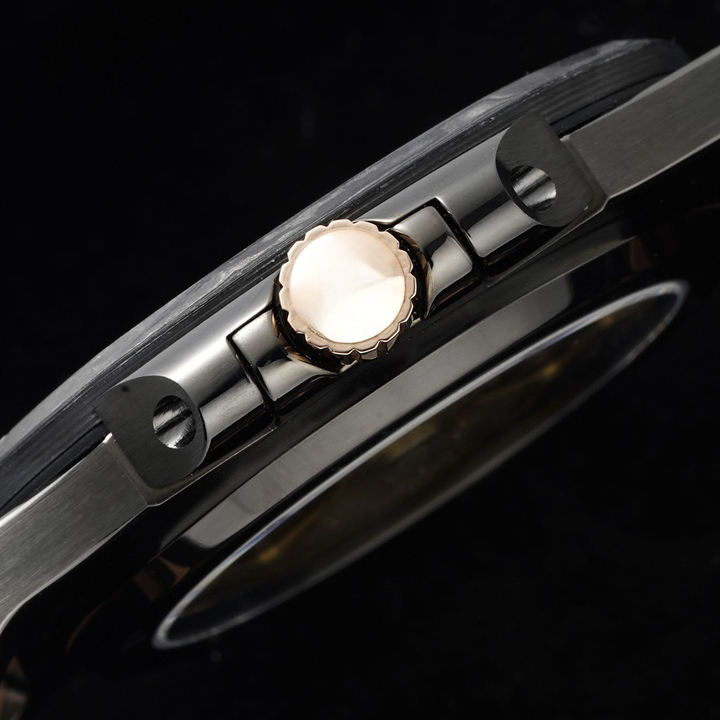 นาฬิกาข้อมือหรูหราปี 2026 รุ่นพรีเมียมใหม่ ตัวเรือนคาร์บอนไฟเบอร์สีโรสโกลด์ หน้าปัดลายเส้นสีเข้ม ทรงแปดเหลี่ยม ระบบอัตโนมัติ แสดงวันที่ กันน้ำ