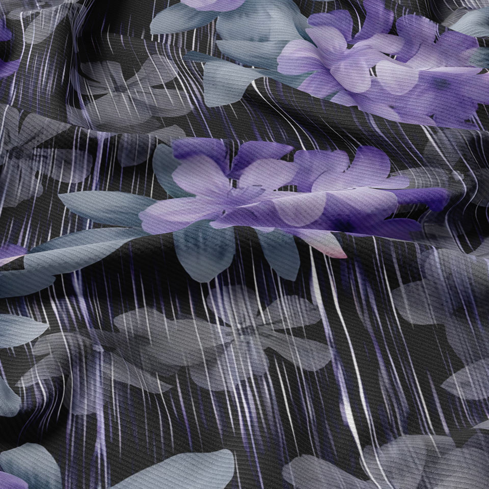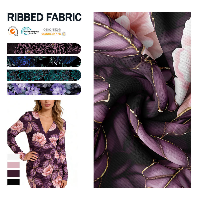 2026 New Product Custom Prints Floral Pattern 4 Way Stretch Polyester Spandex Unbrushed Ribbed Knit Fabric for Dresses