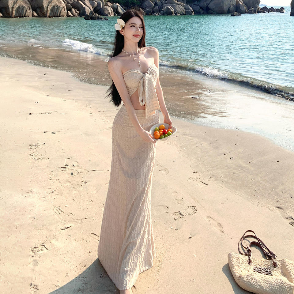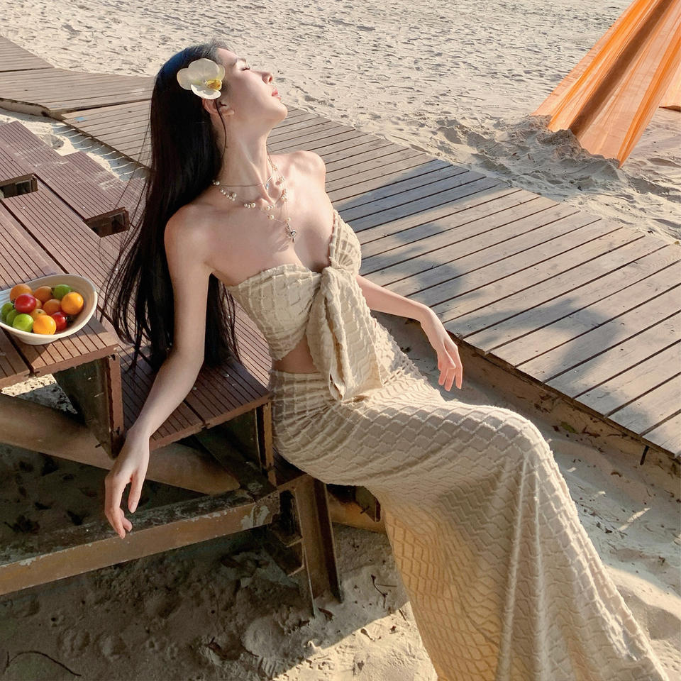 ชุดเดรสเกาะอกสไตล์วันหยุดคุณภาพสูงรุ่นใหม่ปี 2026 พร้อมกระโปรงทรงเข้ารูปสำหรับการเช่าบ้านพักตากอากาศหรูหรา