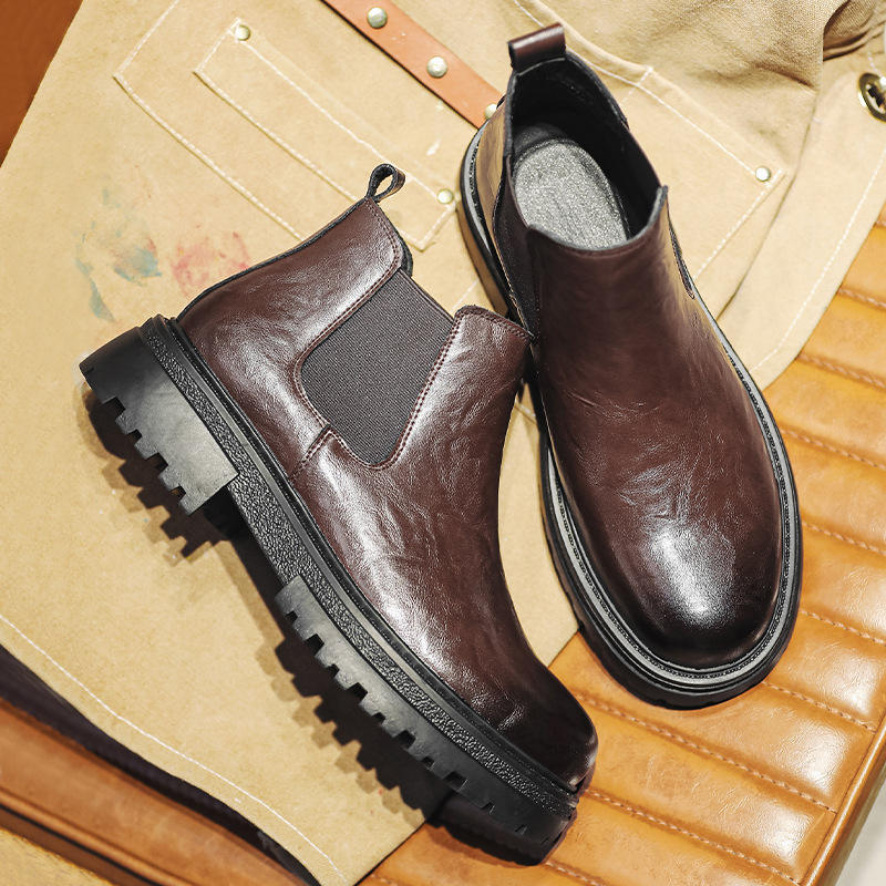 รองเท้าบูทข้อเท้าสไตล์เรโทรใหม่ปี 2026 สำหรับผู้ชาย บุขนแกะอุ่นสบาย สไตล์เชลซี แบบสวม ทันสมัย