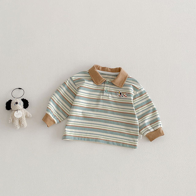 เสื้อโปโลเด็กผู้ชายแฟชั่นลายทางสีสันสดใส รุ่นใหม่ประจำปี 2026 เสื้อยืดเด็กอินเทรนด์พร้อมป้ายแบรนด์