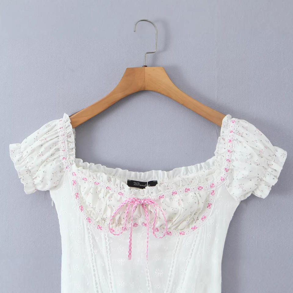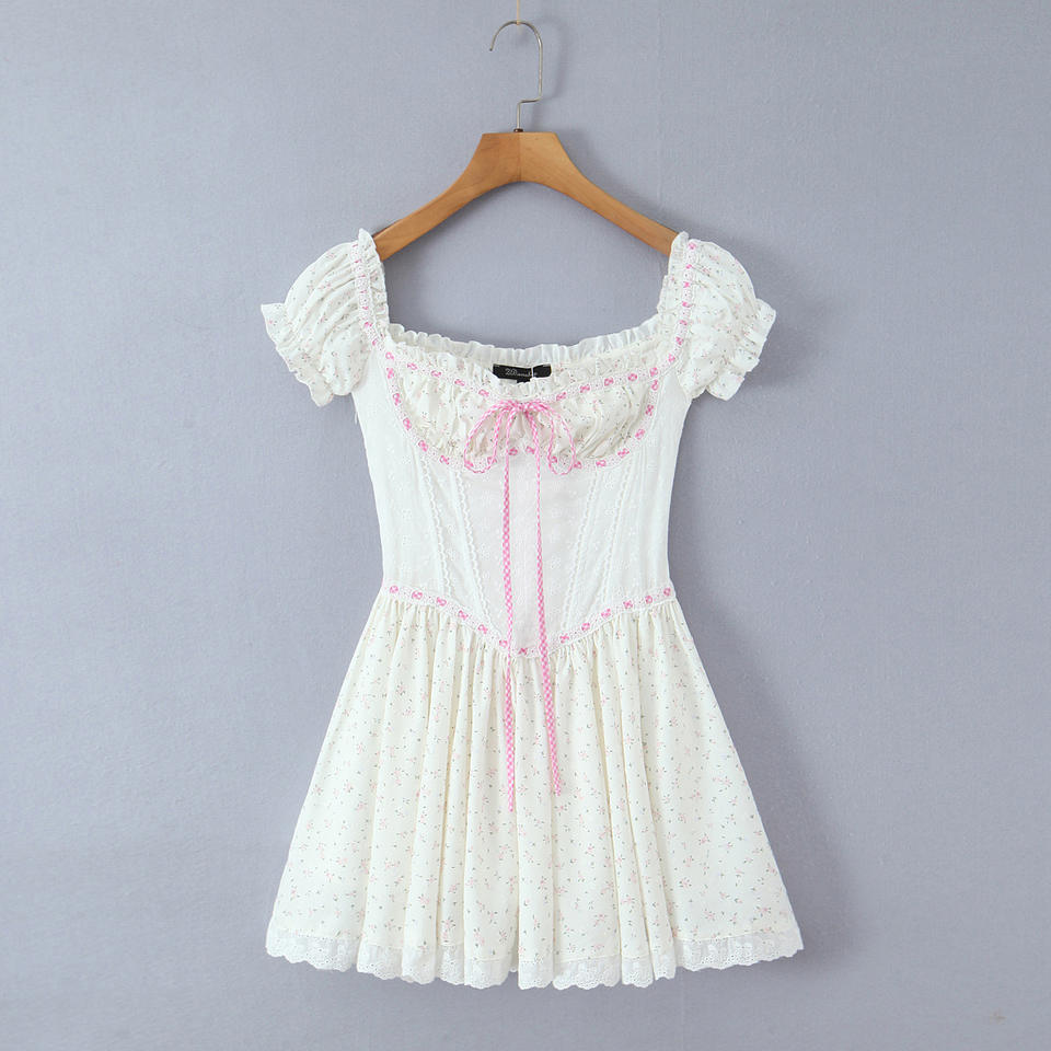 เสื้อผ้าผู้หญิงคอลเลคชั่นต้นฤดูใบไม้ผลิปี 2026 - สไตล์สาวชนบทฝรั่งเศส - ชุดเดรสลายสก็อตปักลายดอกไม้หวานๆ แบบไหล่เดียว