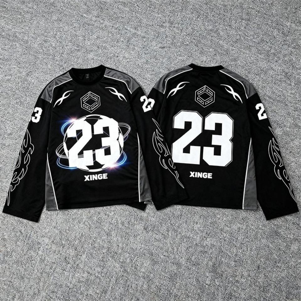 เสื้อเจอร์ซีย์กีฬาอเมริกันสไตล์สตรีทแวร์ปี 2026 แขนยาว พิมพ์ลายกราฟิกแบบ DTG ออกแบบเองได้ เสื้อสเวตเชิ้ตลำลองสำหรับทุกเพศ