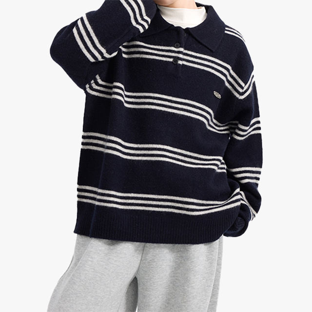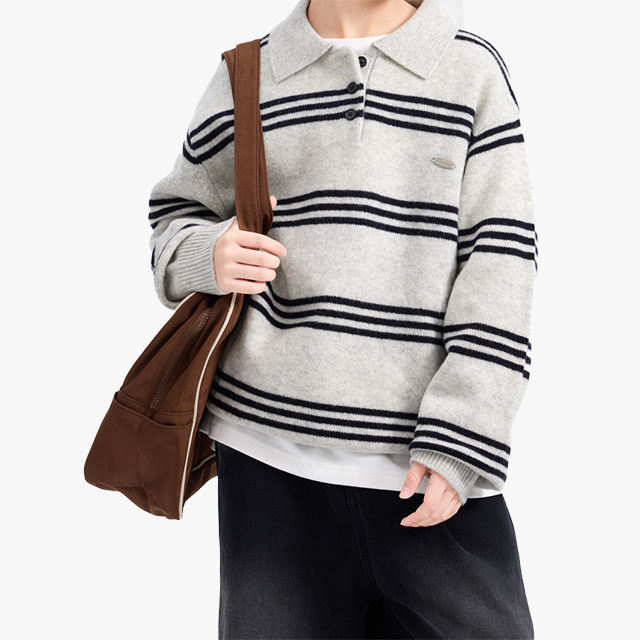 เสื้อกันหนาวเด็กผู้ชายแบบใหม่ปี 2026 ลายทาง คอปกโปโล ผ้าถักหนา ครึ่งตัวแบบคาร์ดิแกน