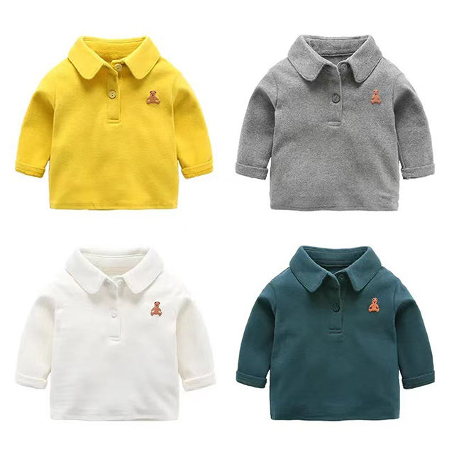 เสื้อโปโลเด็กผู้ชายสไตล์ใหม่ปี 2026 แฟชั่นฤดูใบไม้ผลิและฤดูใบไม้ร่วง เสื้อเชิ้ตคอปกสำหรับเด็ก เสื้อสีขาวสำหรับเด็กทารก เสื้อซับในสำหรับเด็ก