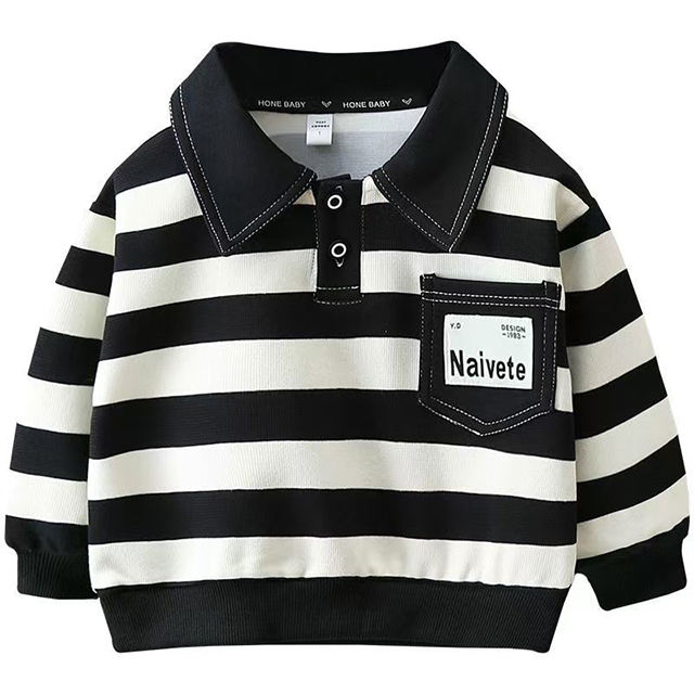 2026 เสื้อสเวตเตอร์เด็กชายสไตล์ใหม่ฤดูใบไม้ผลิฤดูใบไม้ร่วงเด็กเสื้อโปโลลายทางเด็กวัยหัดเดินฤดูใบไม้ร่วงแฟชั่นเสื้ออเนกประสงค์