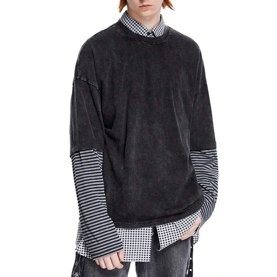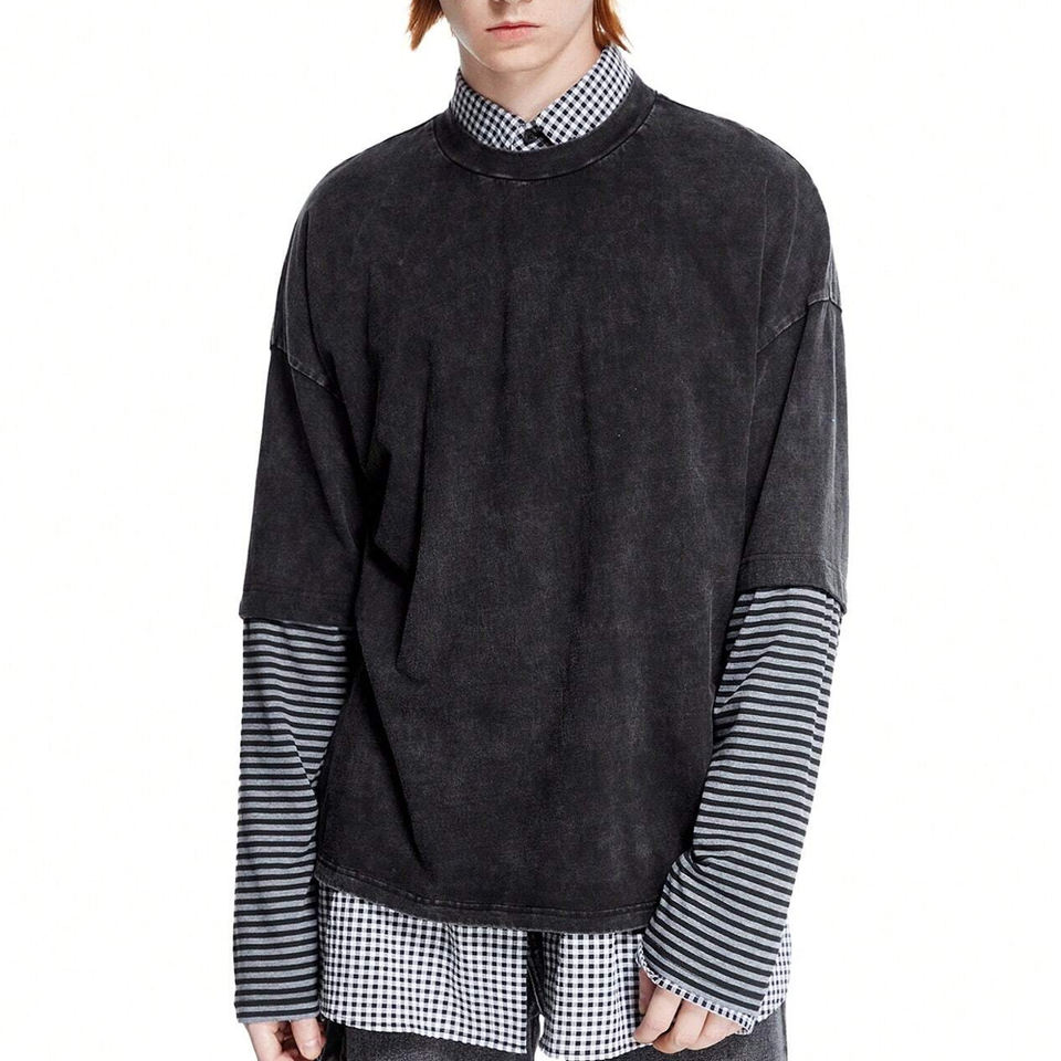 เสื้อยืดแขนยาวผู้ชาย ผ้าฟอกสี