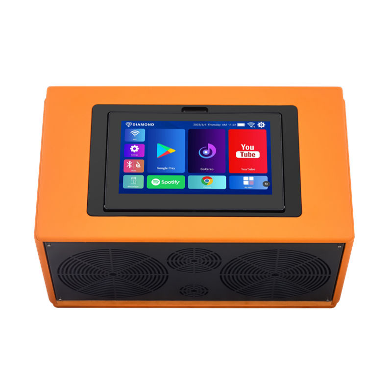 ส่วนประกอบของระบบคาราโอเกะ:เครื่อง All-in-One, สายเคเบิลเชื่อมต่อ, ไมโครโฟน, แผงดิจิตอล, หน้าจอสัมผัส, ลำโพง, เครื่องผสมเสียง