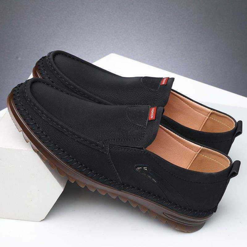รองเท้าหนังแท้สไตล์ใหม่ปี 2026 สำหรับผู้ชาย แบบสวม สไตล์ลำลองทางธุรกิจ หัวแหลม กันลื่น พื้นนุ่ม กันน้ำ ระบายอากาศได้ดี