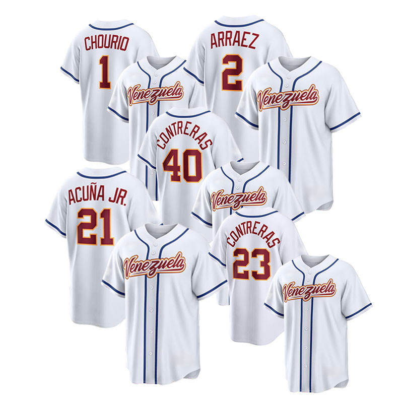 เสื้อเบสบอลทีมเวเนซุเอลาแบบเย็บติดกันรุ่นใหม่ปี 2026 ราคาถูก สไตล์อเมริกัน หมายเลข 21 อาคูน่า จูเนียร์ 1 โชริโอ 23 คอนเทรราส 0 กิเมเนซ 2 อาร์เรซ