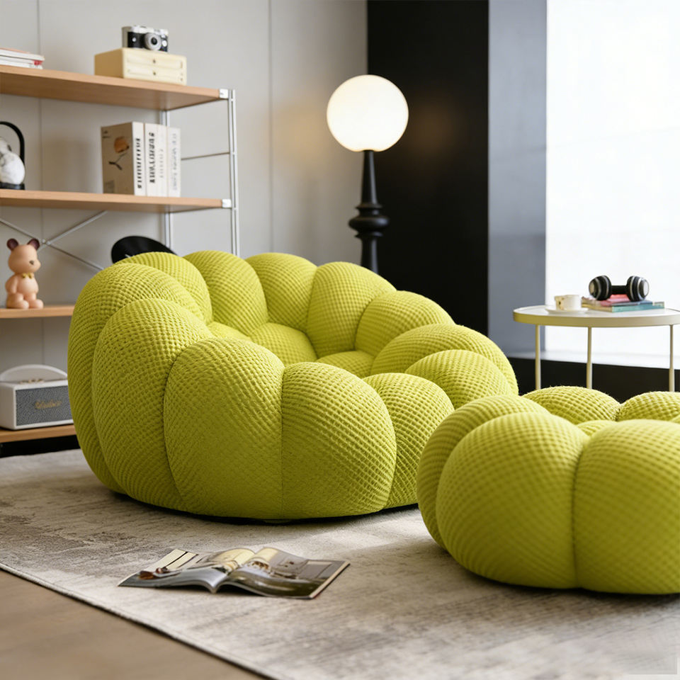 2026 New Trending Contemporary Sitting Room Compressed One Single Seat Sponge Filled Velvet Bubble Sofa with Footstool