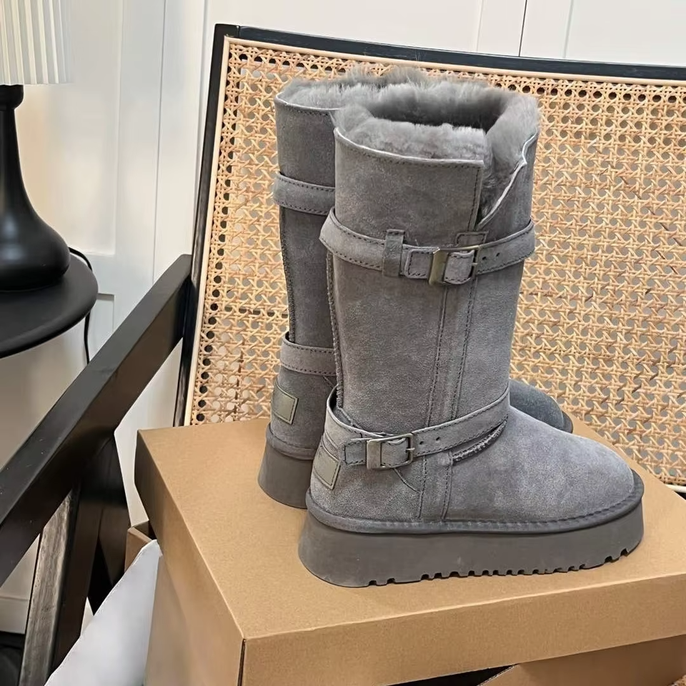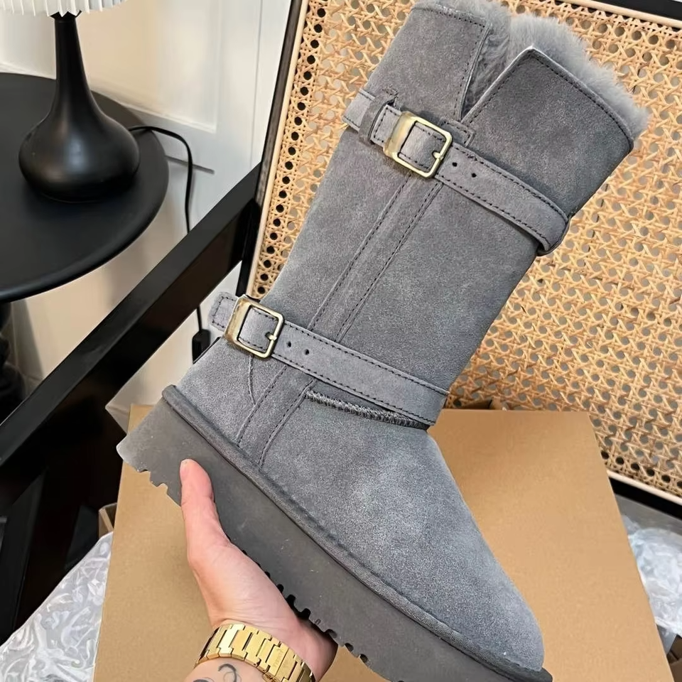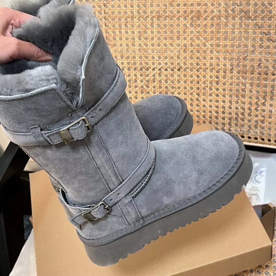 รองเท้าบูท Uggs แบรนด์ใหม่ ปี 2026 หนังแท้ ระบายอากาศได้ดี อุ่นสบาย บุขน แฟชั่น รองเท้าบูททรงหนาสำหรับฤดูหนาว รองเท้าบูทหิมะสำหรับผู้หญิง ฤดูใบไม้ร่วง