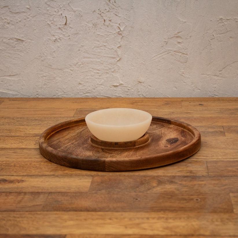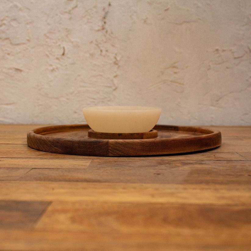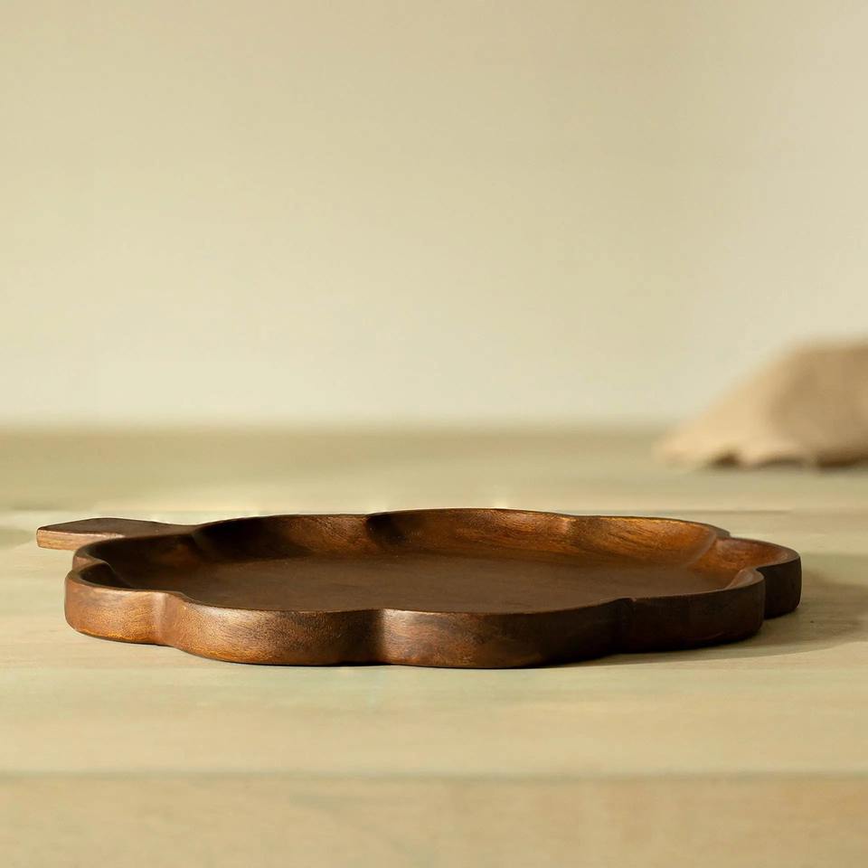 ถาดไม้ทรงกลมสีขาวลายดอกไม้ขนาด 12 นิ้ว ปี 2026 สำหรับเสิร์ฟขนมแปลกใหม่ มันฝรั่งทอด นาโชส พร้อมชูต์นี่หรือซอสต่างๆ