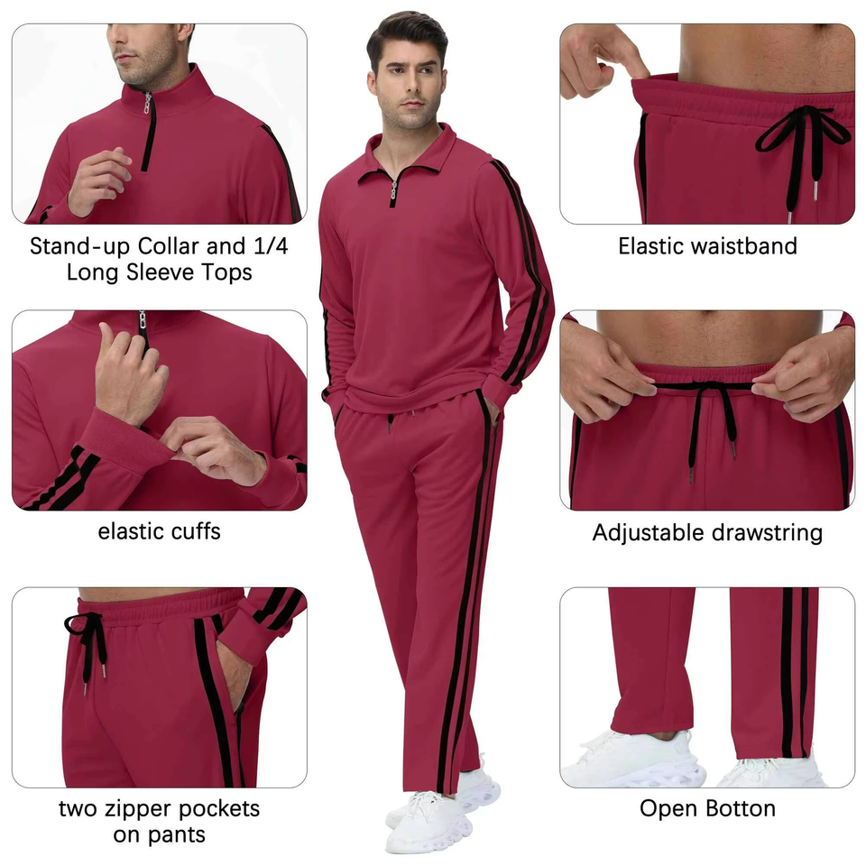 2026 New Year Men's Gym Fitness Tech Fleece Breathable Two-Piece Sports Tracksuit 100% Polyester Sporty Winter Track