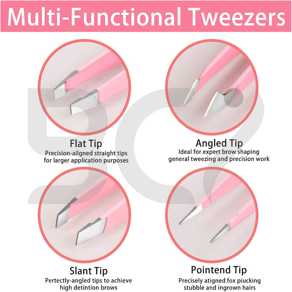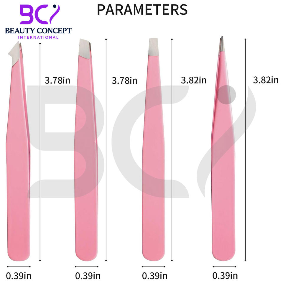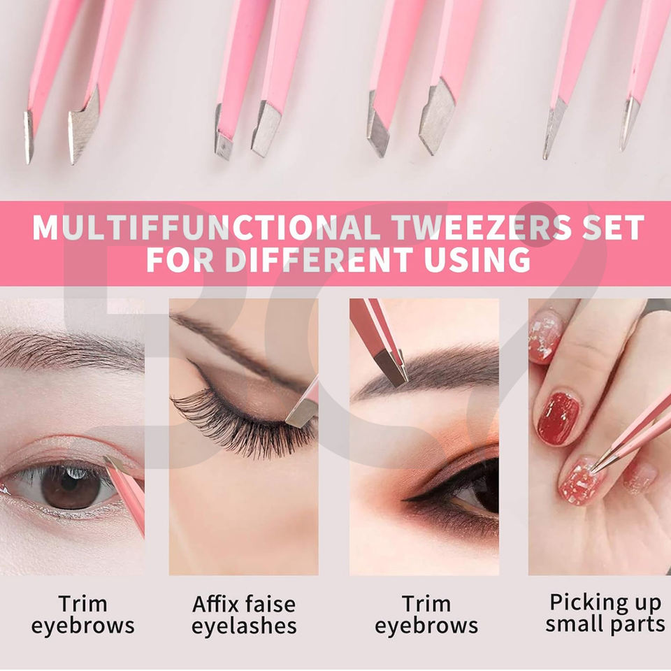 แหนบถอนขนคิ้วสีชมพู ดีไซน์ใหม่ล่าสุดปี 2026 ชุด 4 ชิ้น ทำจากสแตนเลส ปลายเฉียง ทนทาน ทำความสะอาดง่าย สำหรับขนคิ้วที่งอกเข้าไปในรูขุมขน