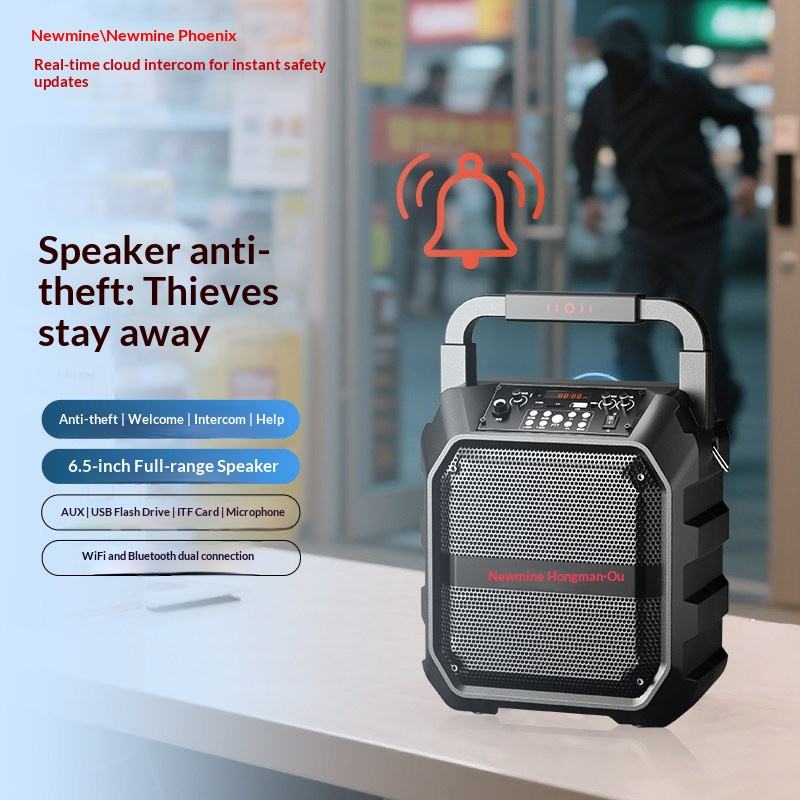 เครื่องประกาศเสียงกันขโมย Newmine ปี 2026 พร้อมเซ็นเซอร์สั่นสะเทือน ตรวจจับการเคลื่อนไหว ลำโพงรักษาความปลอดภัย ระบบโทรฉุกเฉิน SOS และอินเตอร์คอมทั่วโลก