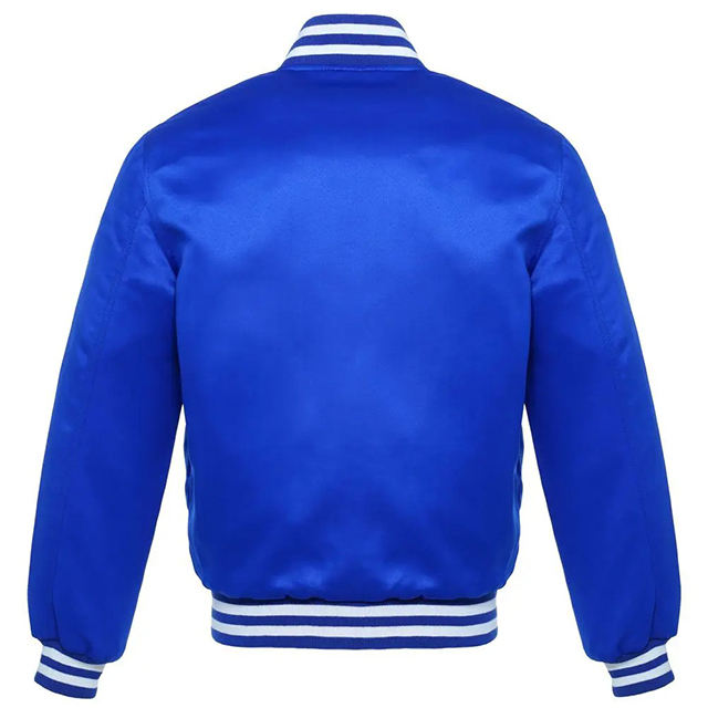 เสื้อแจ็คเก็ตผ้าซาตินสีน้ำเงินแบบสั่งทำพิเศษ OEM ขายดีที่สุดปี 2026 สำหรับผู้ชาย คุณภาพสูง 100% ราคาถูก MOQ ต่ำ กันลมสำหรับฤดูหนาว แบบติดกระดุมด้านหน้า