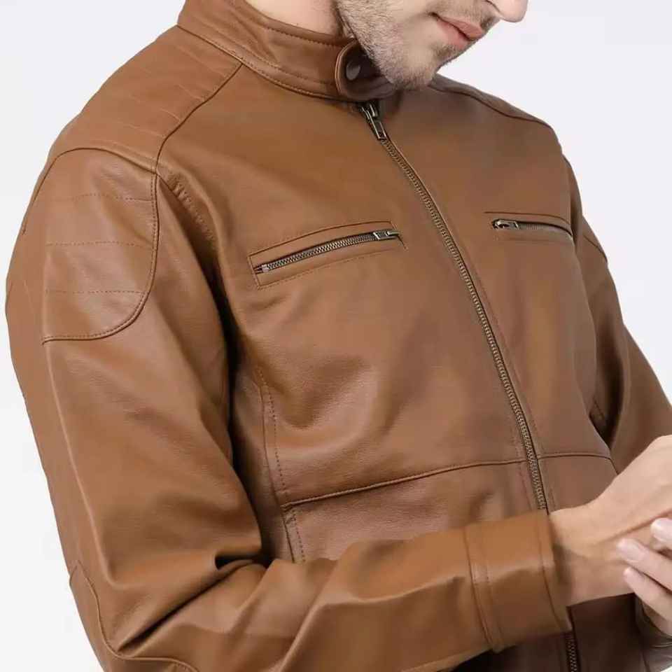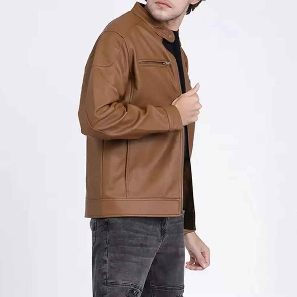เสื้อแจ็คเก็ตหนังผู้ชายสีน้ำตาล รุ่น OEM ปี 2026 แขนยาว ผลิตภัณฑ์เสื้อแจ็คเก็ตหนังสำหรับผู้ชาย