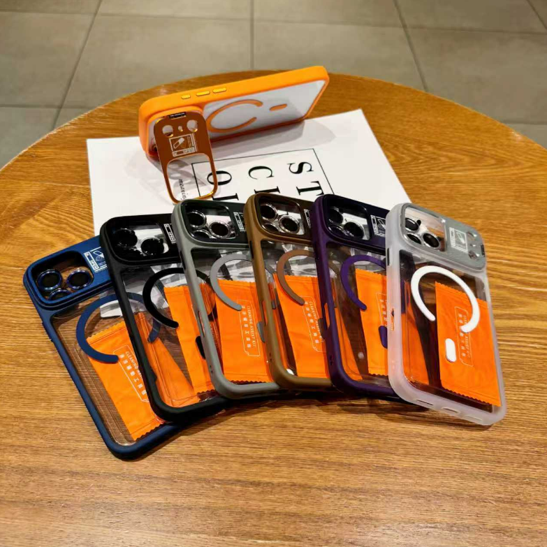 เคสโทรศัพท์แม่เหล็กโลหะ TPU+PC สีส้ม รุ่นปี 2026 แฟชั่น ป้องกันการกระแทก ป้องกันการตก สำหรับ iPhone 17 17 Pro 17 Air 17 Pro Max