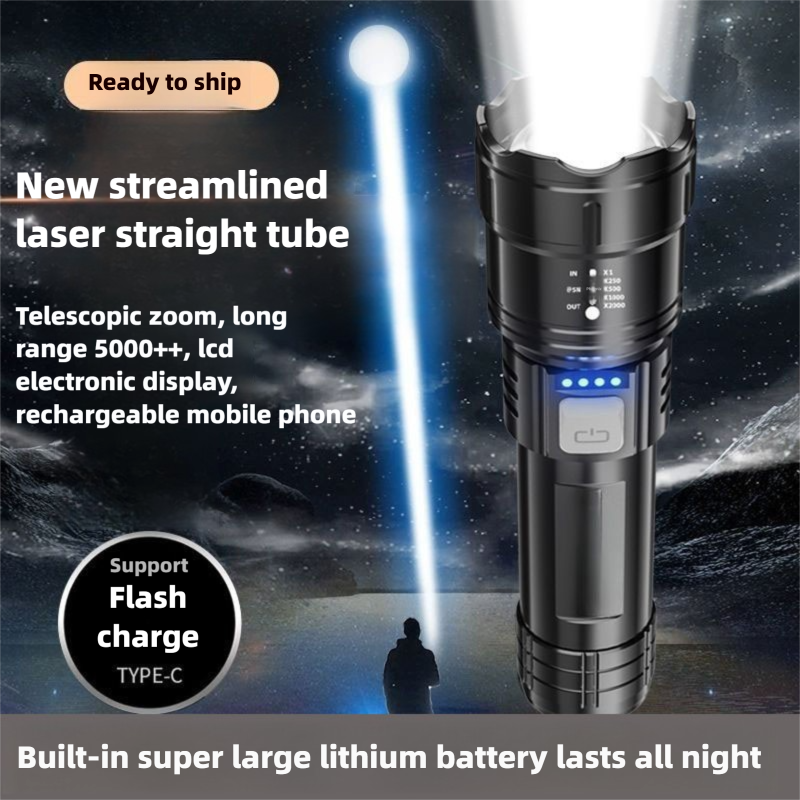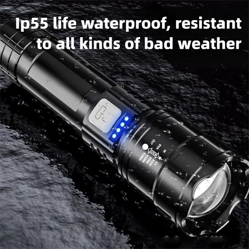 2026 Outdoor Tactical Torch Flashlight Solar USB Rechargeable Camping Light with ABS Body Waterproof White Light 1-Year Warranty