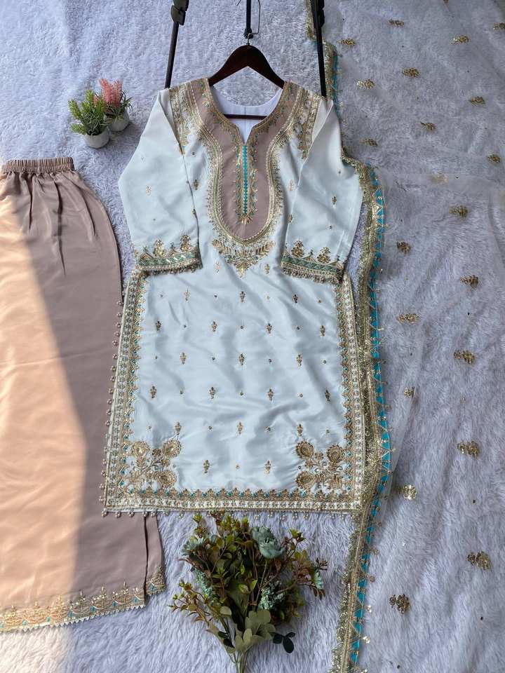 ชุดสัลวาร์ คามีซสีขาวแบบปากีสถาน ปี 2026 ผ้าไหมปักลาย ชุดพื้นเมืองสำหรับผู้หญิง 3 ชิ้น ชุดออกแบบโดยดีไซเนอร์อินเดีย สำหรับงานแต่งงาน งานปาร์ตี้ สไตล์บอลลีวูด