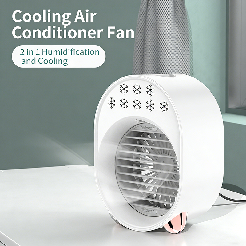 พัดลมตั้งโต๊ะแบบพกพาพร้อมฟังก์ชั่นพ่นละอองน้ำ รุ่นปี 2026 ใช้พอร์ต USB มี 3 ระดับความเร็วลม เงียบ เหมาะสำหรับห้องนอน โต๊ะทำงาน และสำนักงาน