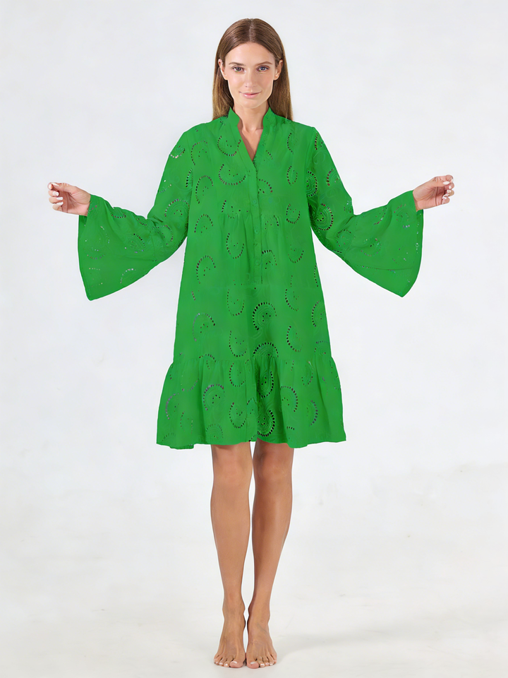 เสื้อถักไหมพรมคอวีทรงหลวมไซส์ใหญ่ ปี 2026 แขนบานปักลาย ความยาวระดับเข่า ซักได้ ทรงเอไลน์ ใส่ได้ทุกวัน ฤดูใบไม้ผลิ ฤดูร้อน ฤดูใบไม้ร่วง