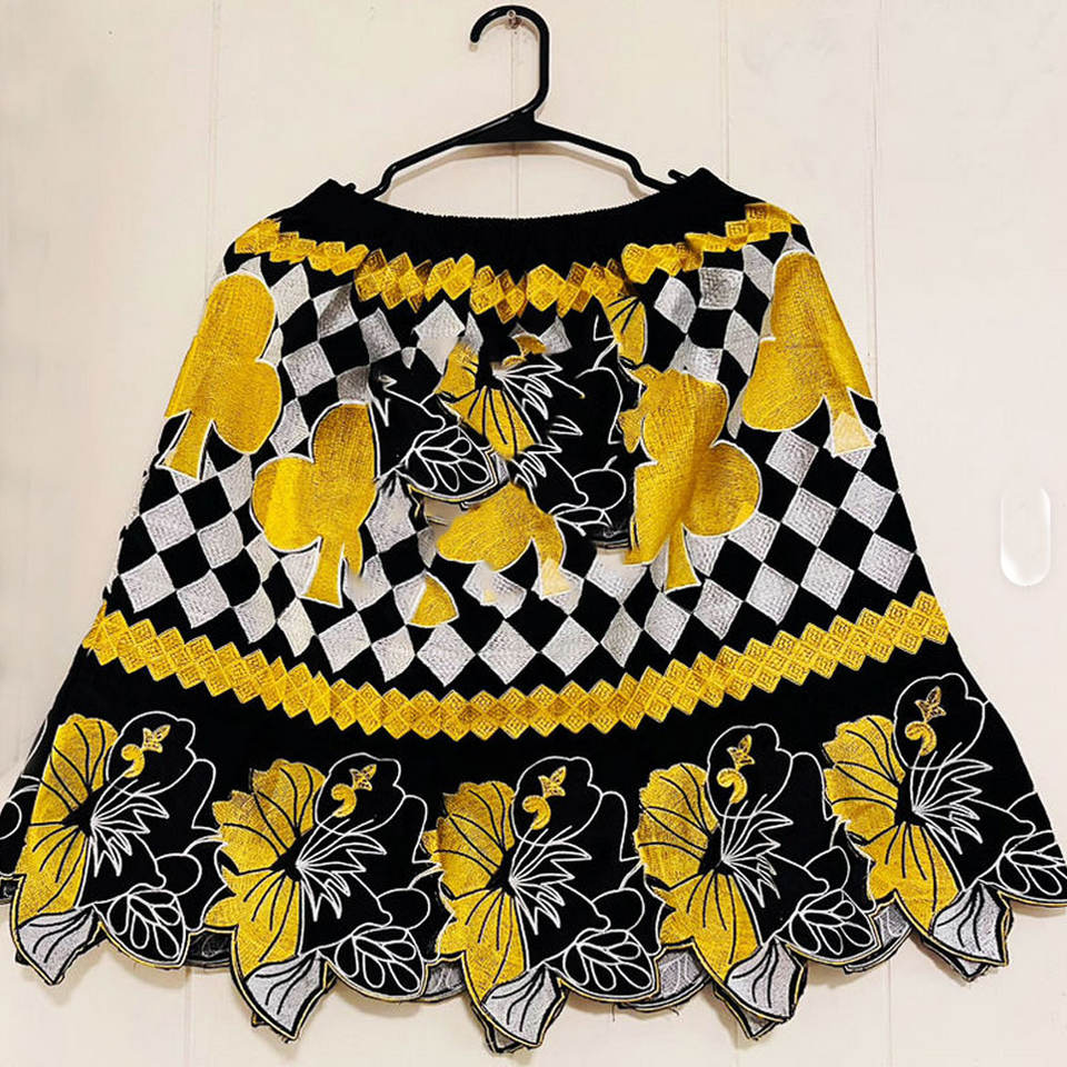กระโปรงปอนเปอีลายดอกไม้ปี 2026 กระโปรงยาวปานกลางเอวยางยืด กระโปรงสไตล์ไมโครนีเซียน งานปักลายดินแดน ขายดี กระโปรงสีดำ