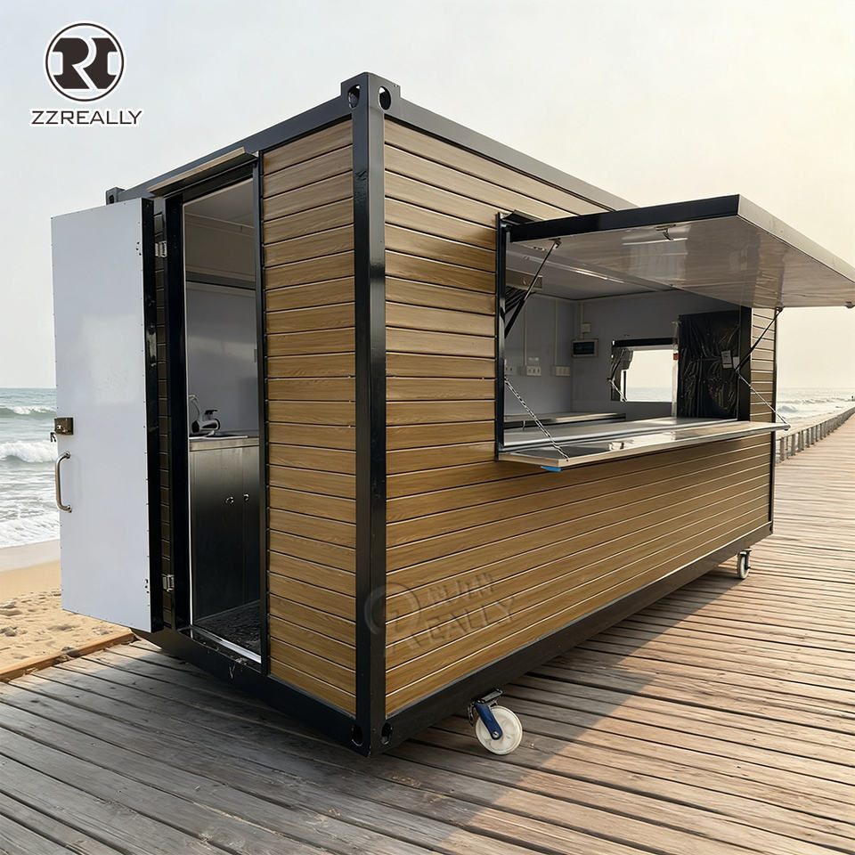 ร้านอาหารสำเร็จรูปจากตู้คอนเทนเนอร์ขนส่งสินค้า ปี 2026 ออกแบบเคาน์เตอร์บาร์อาหารจานด่วนและอุปกรณ์ครัวจากประเทศจีน